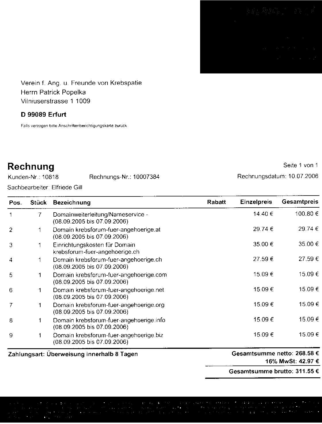 Der Hauptanteil der Domainkosten wird von einer Internetfirma gesponsert.